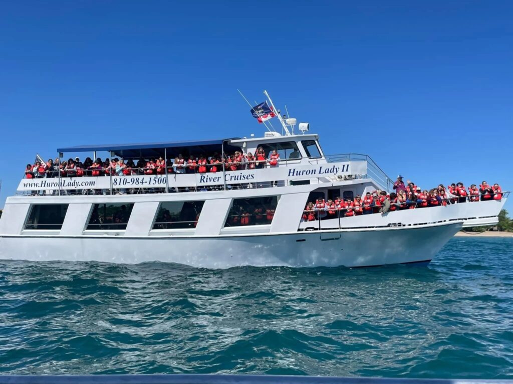 Take a trip on board the Lady Huron II and enjoy a refreshing sightseeing tour by boat. The 2 hour cruise takes place in the St. Clair River then goes under the two Blue Water Bridges into Lake Huron. You will view the Fort Gratiot Lighthouse, Canada, Great Lake ships, the Huron Lightship and the Coast Guard Cutter Hollyhock. We will also have a buffet lunch during the cruise.