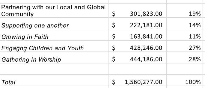 The photos and budget breakdown you see here provide a glimpse into the stories behind our 2022 Annual Budget. We hope that you will go all in with us, providing your story, resources, and commitment to our community and kin-dom.